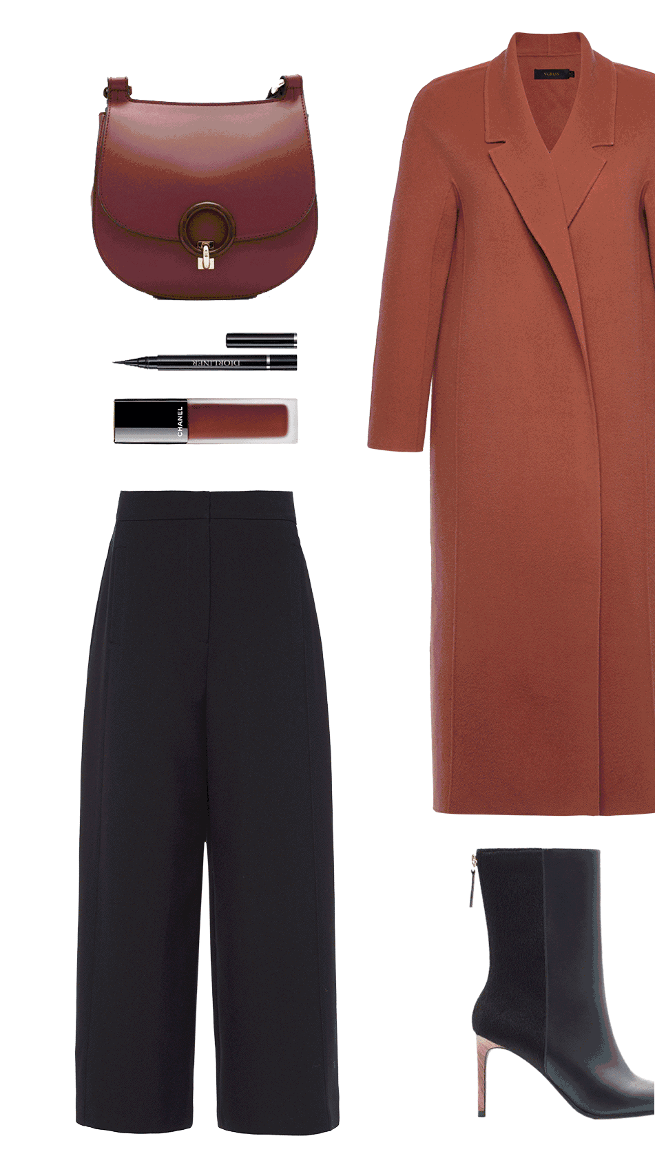 阔腿裤的强大在于它的百搭实用,与冬季常出镜的呢大衣搭配也具有意想不到的叠搭美感。长线条的廓形呢大衣将身体的曲线极力拉至最长,露出的宽松裤腿下摆与大衣强烈的轮廓感和线条感相得益彰,体现干练与随性并重的双重视觉感受。